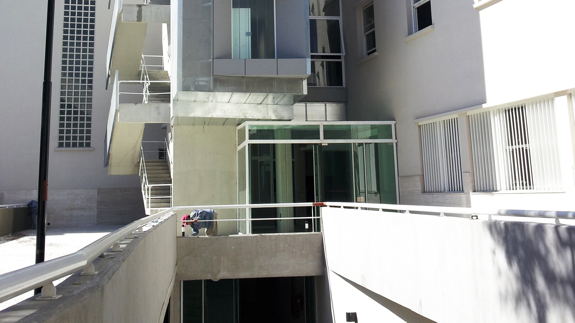 Unificamos los edificios de la Escuela de Guerra a fin de reordenar los accesos y circulaciones, de generar un sistema de ingreso que genere una secuencia dinámica que intensifica las relaciones entre espacios.