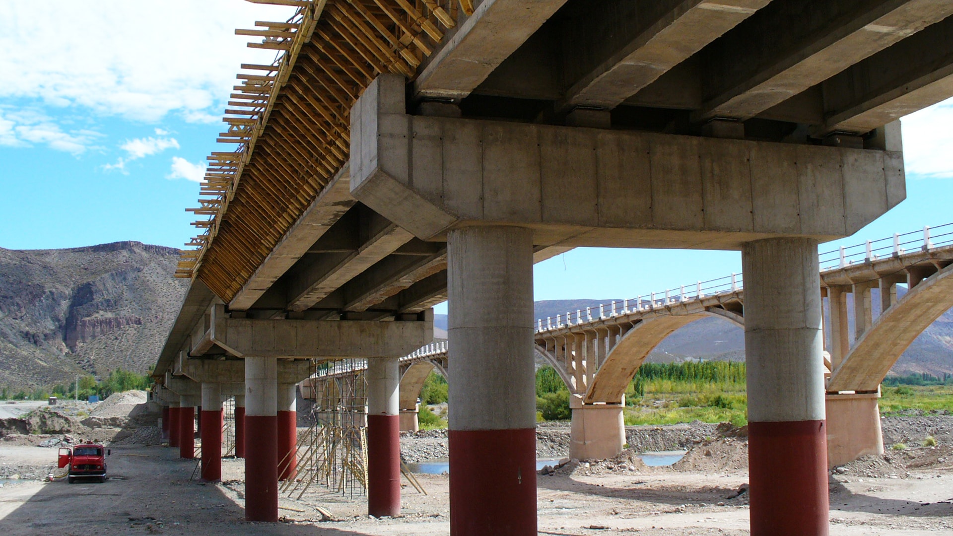 Realizamos, además, el desvío provisorio del puente, mientras trabajábamos en el desarme y retiro del puente Bailey existente y demoliciones varias.